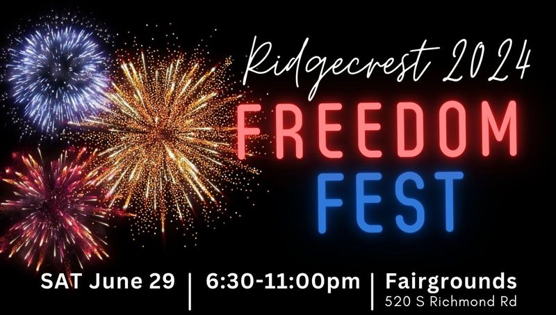 Hey Ridgecrest, July 4th is happening early this year. Get ready for the ultimate celebration of independence! We’re talking fireworks, DJs, food, drinks, and a whole lot of fun at the Ridgecrest Freedom Fest. It’s all going down on Saturday, June 29, at the Fairgrounds (520 S Richmond Rd).