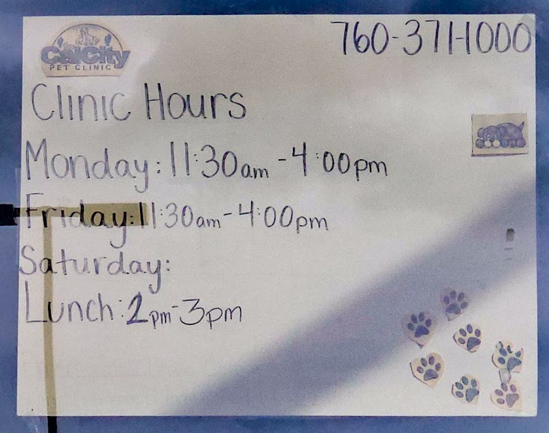 Cal City Pet Clinic is conveniently located at 634 S China Lake Blvd g, Ridgecrest, CA 93555, USA. You can find them easily accessible for all your veterinary needs in the heart of Ridgecrest.